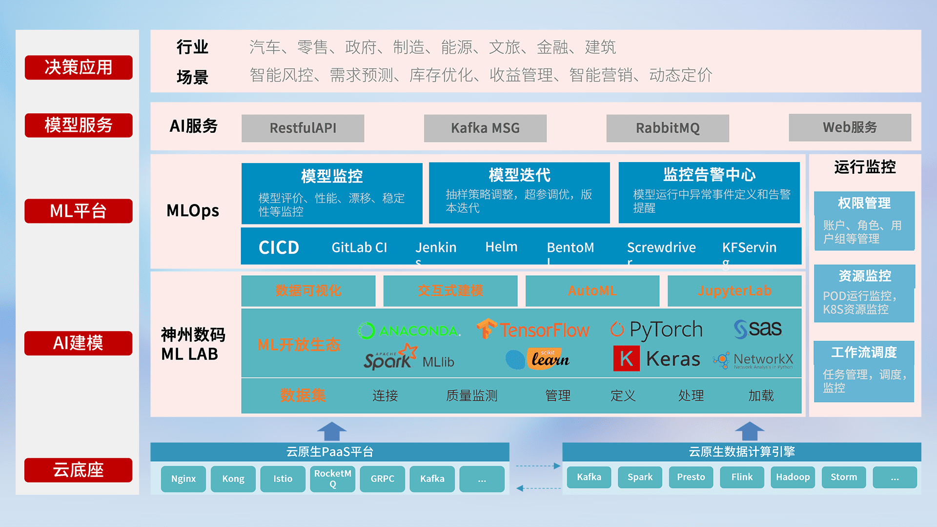 数据+模型双引擎驱动,,面向智能服务场景,,,,快速灵活利用AI技术,,,支持业务决策,,,助力企业智能化转型破局。。。。